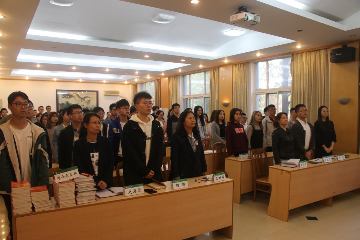 本次党员培训课在雄壮的国歌声中开始。国歌奏唱完毕后,在肖书记的领誓下,全体党员重温了入党誓词,牢记使命,不忘入党初心。