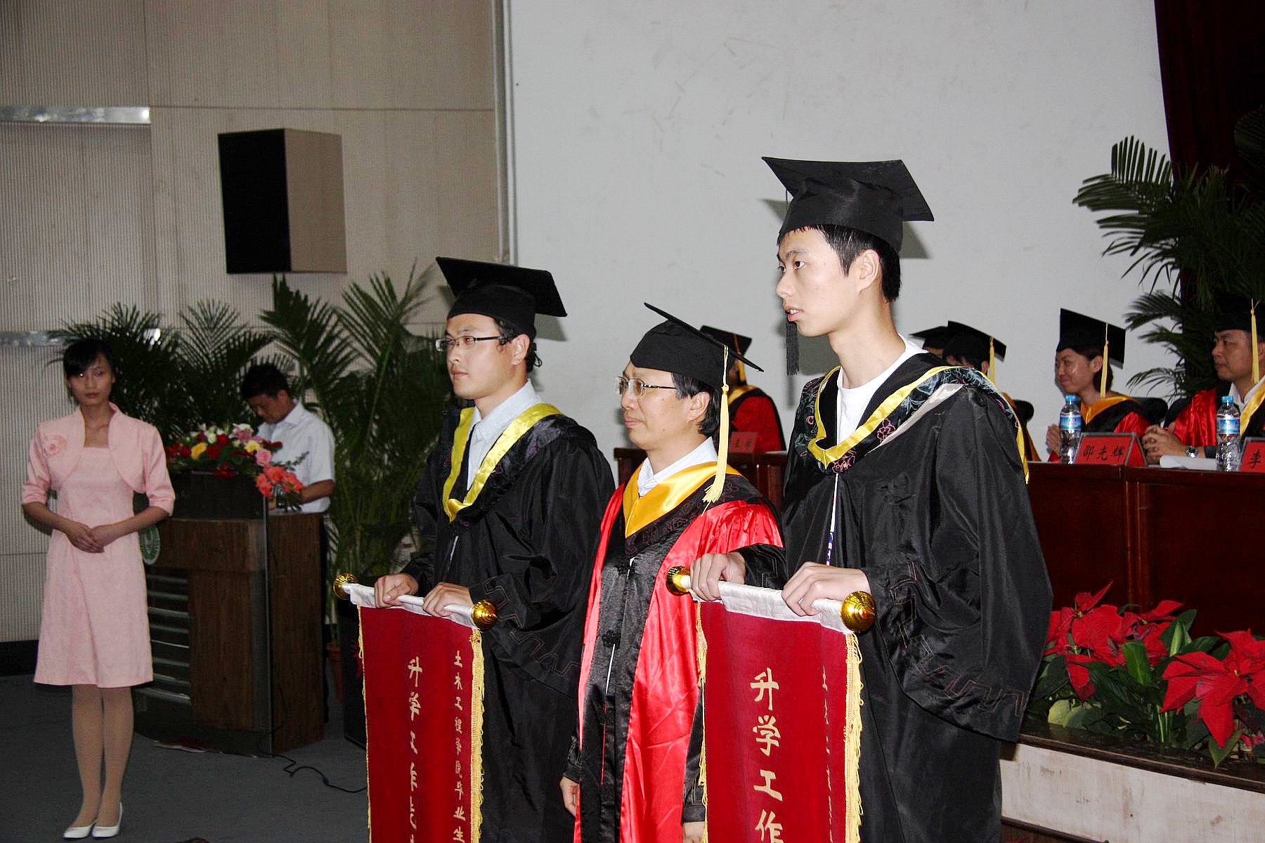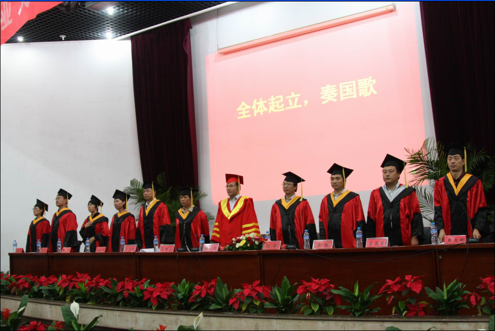 毕业典礼在庄严的国歌声中拉开帷幕。