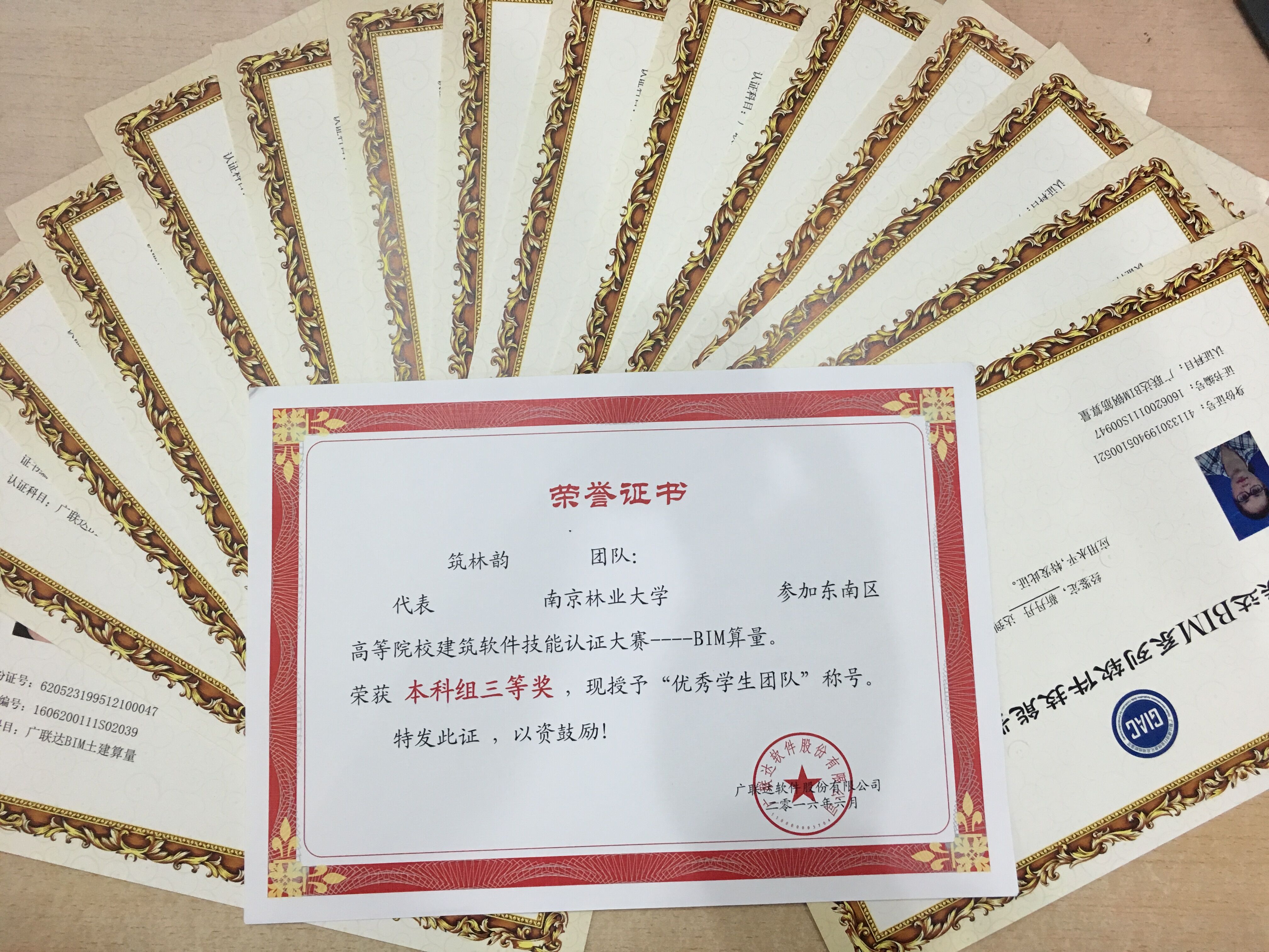 本次认证大赛面向东南区江苏、上海、浙江、广东等省市高校建筑相关专业在校生,共计有83所本、专科院校,123支团队(每个团队人数30人以上)参加,共3437名高校员工参加了这次大赛。公司工管“筑林韵”团队荣获员工团队三等奖,十余人次单科达90分,获BIM钢筋算量熟手级证书和BIM土建算量熟手级证书,数十余人获BIM钢筋算量基础级证书和BIM土建算量基础级证书。其中13级的吕婷同学以97.65分斩获GGJ(BIM钢筋算量软件)单科江苏省第一名。