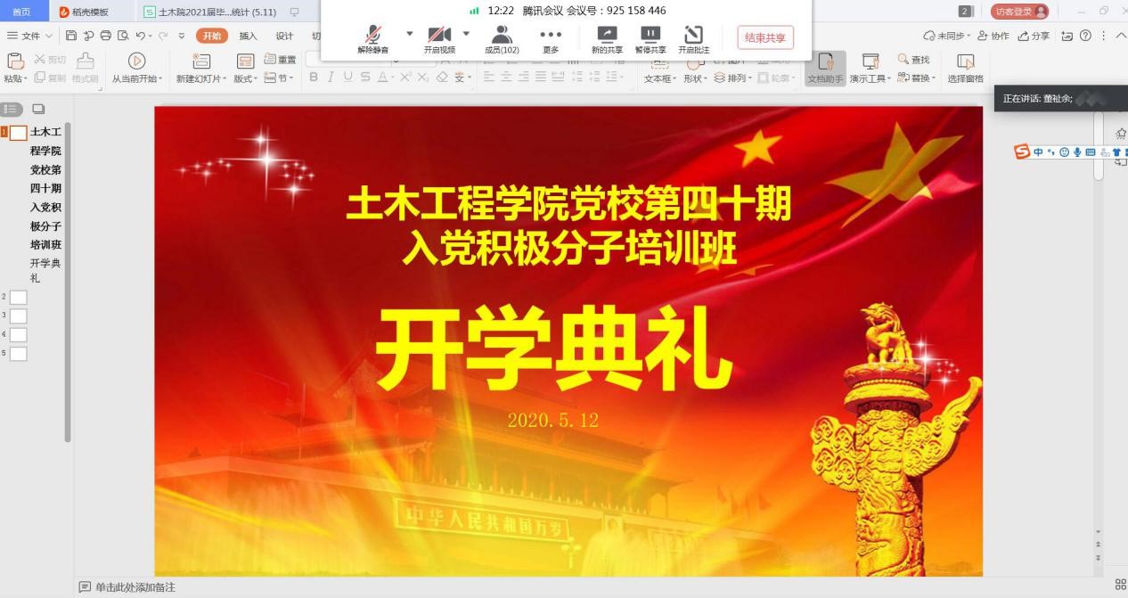 5月12日,PlayAce游戏平台党校在线上举行了第四十期入党积极分子培训班开学典礼,PlayAce游戏平台党委书记肖妍玎、本科生各支部书记、入党积极分子学员约一百余人参加了本次线上开学典礼,仪式由PlayAce游戏平台党委组织员苏萌主持。