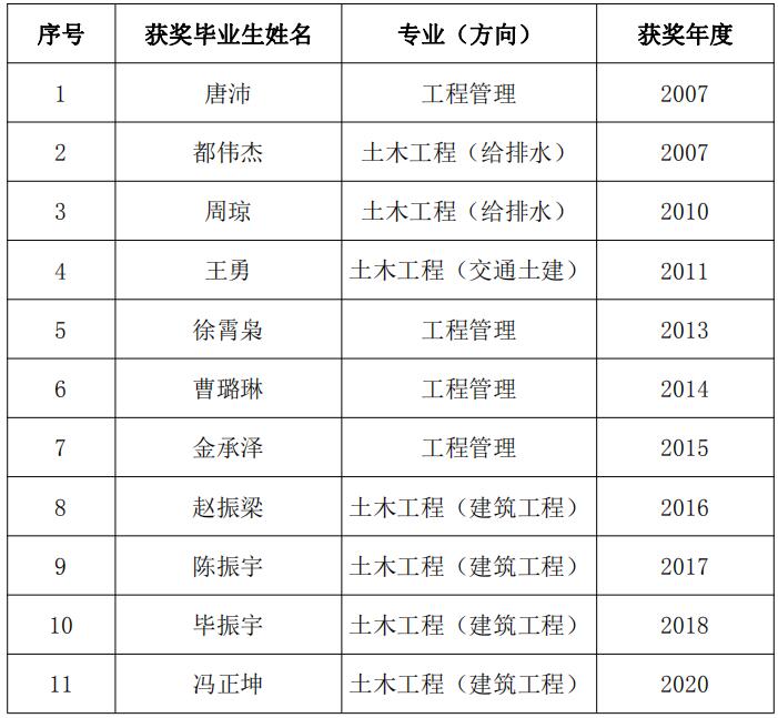 2007年以来公司已有11名土木工程专业和工程管理专业的优秀毕业生获得中国土木工程学会高校优秀毕业生奖,获奖人数位居国内同类高校前列。