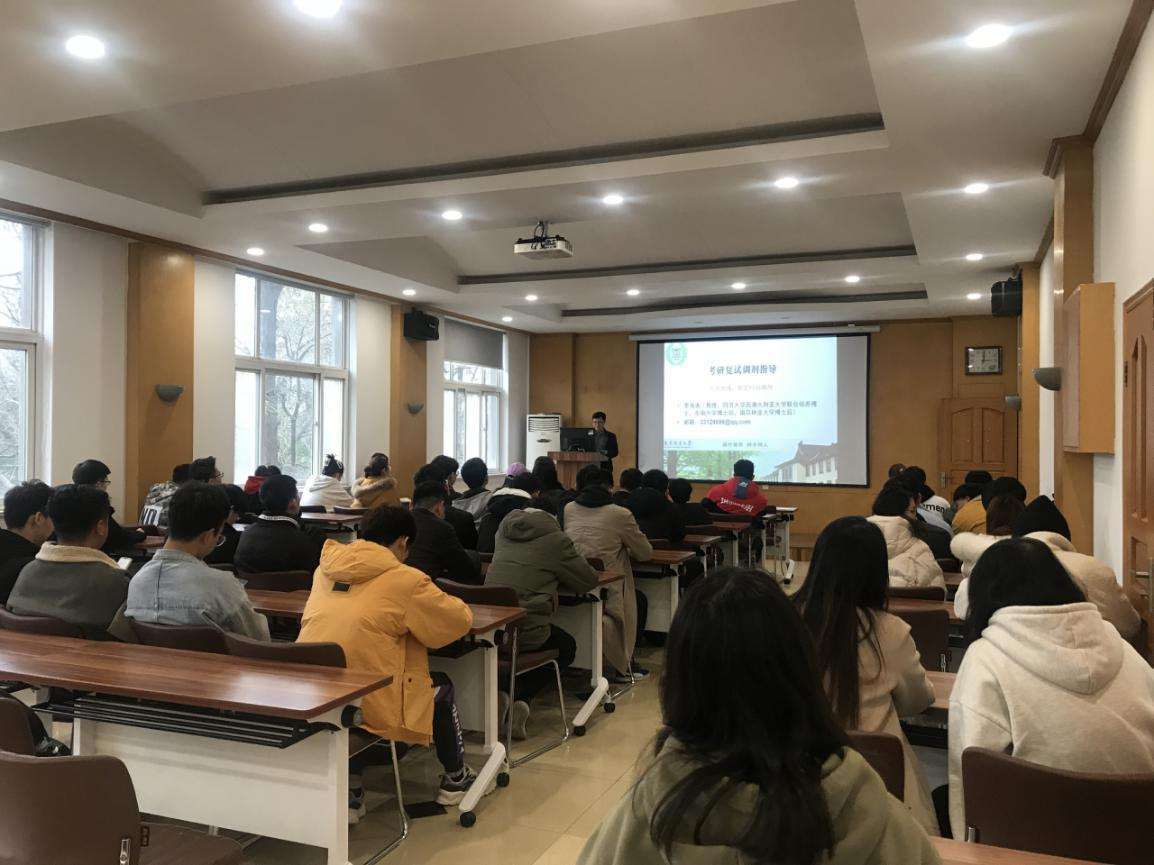 会上,副经理李海涛从读研的意义与当前形势、调剂的注意事项、导师的选择和PlayAce游戏平台顺利2021年研究生初试上线情况等方面给予了详细的分析和指导。接着,PlayAce游戏平台党委副书记、副经理柳任飞向与会的同学们分享了PlayAce游戏平台顺利往年考研学子的调剂经验和结果,并对同学们提出了要求,她希望同学们能用积极乐观的心态去面对社会环境对复试和调剂所带来的挑战,拓宽思路、扬长避短、精心准备、精准对接,提高调剂匹配度、顺利通过复试。