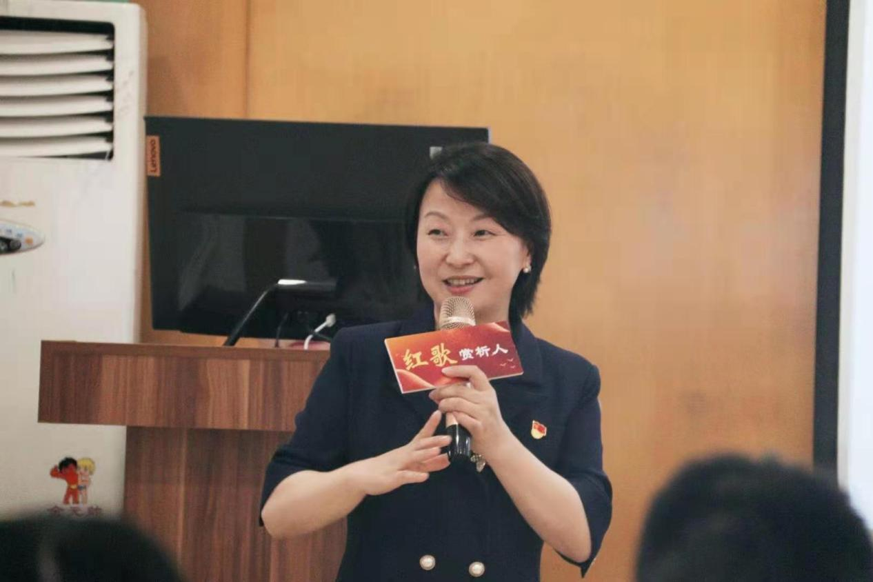 “红歌鉴赏人”——院员工艺术活动指导教师王海燕,提炼了红歌“击打”心灵的拍点,从非遗民间艺术“霸王鞭”引入红歌的音乐节奏型,并分享演唱要领:自信、坚定、激昂!