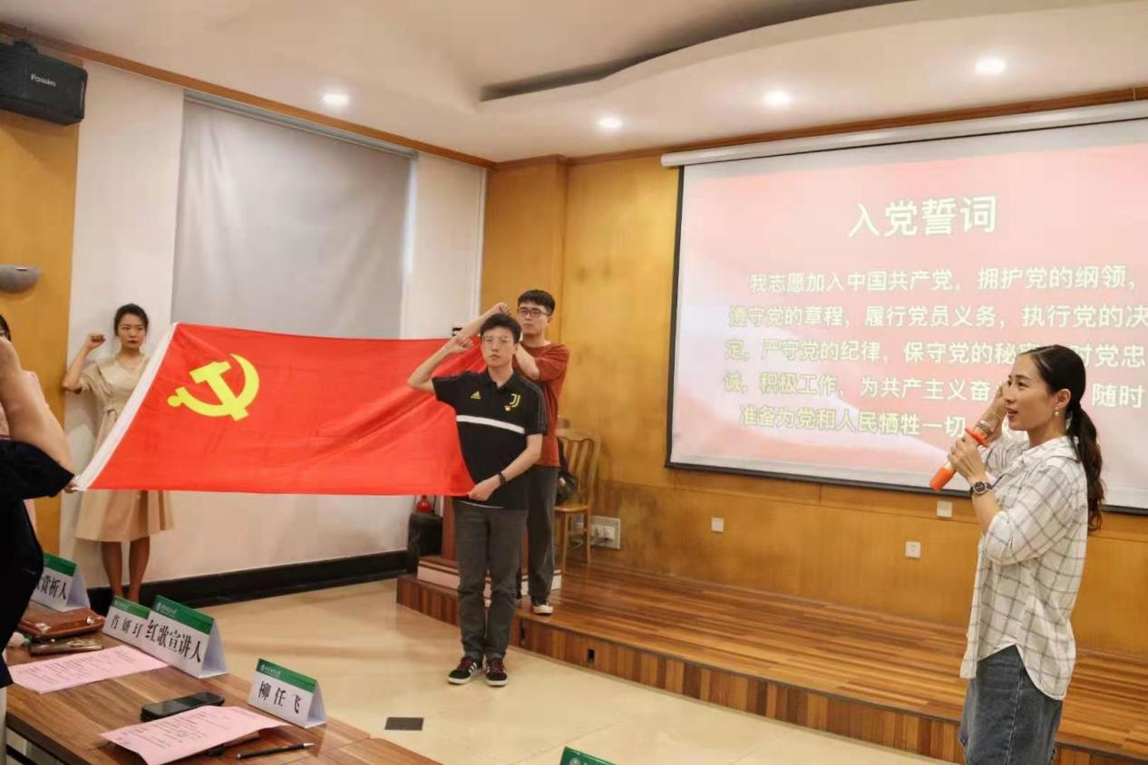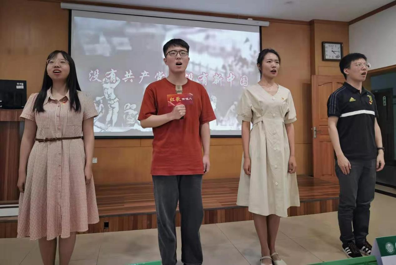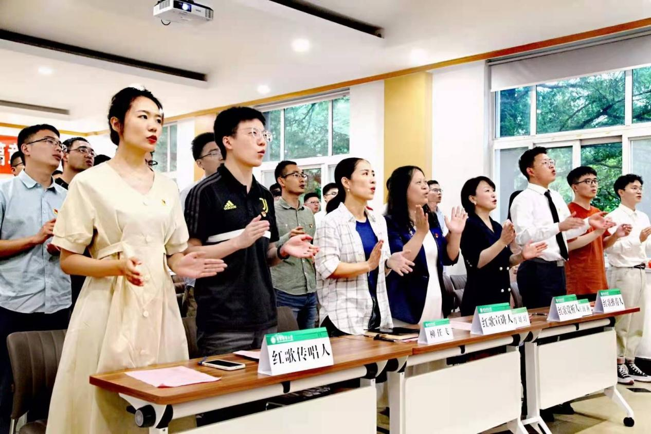 在重温入党誓词环节,PlayAce游戏平台党委副书记、副经理柳任飞带领全场党员再次重温誓词,重忆初心。最后,在支部书记们的带领下,各支部师生党员共唱这首红歌,将全场气氛推向高潮。
