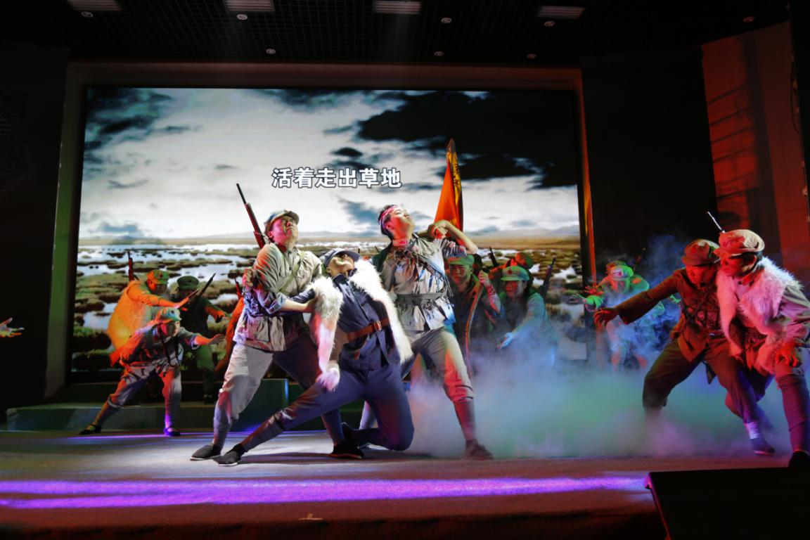 朗诵《丰碑》声情并茂地讲述了军需处长把棉衣让给战友,自己被严寒冻死的故事;歌表演《活着走出草地》描绘了红军长征过草地的壮举,歌曲《漫漫长路》歌颂了红军将士二万五千里长征的艰辛与满腔热血,三个节目从三个角度再现了长征豪情万丈的英雄历程。