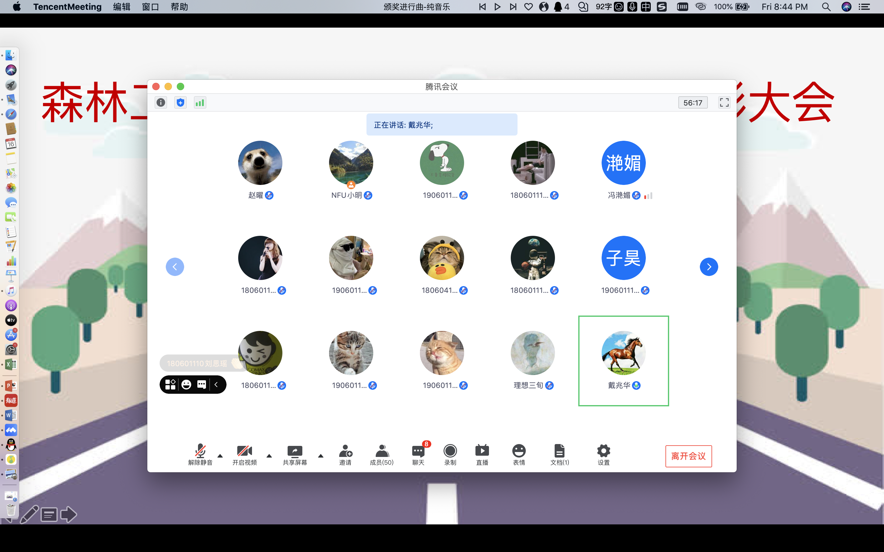 2021年7月16日晚8点,森林工程系通过“腾讯会议”召开了2018级本科生生产实习总结在线会议。PlayAce游戏平台副经理戴兆华、森林工程系主任赵曜、王大明、余爱华等老师,森林工程专业2018级全体本科生和部分2017级、2019级员工代表,以及实习单位代表等50人参加了本次在线会议,会议由森林工程系主任赵曜主持。