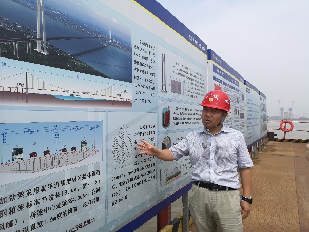 杜亚江处长首先向同学们介绍了仙新路过江通道的概况:仙新路过江通道全长约13.17公里,其中主线桥长约11810.5米、隧道长约241米、道路长约118.5米。跨江大桥采用主跨为1760米的单跨吊钢箱梁悬索桥,在同类型桥梁中居国内第一、世界第二。考虑到仙新路悬索桥的超大跨度、结构相对轻柔、阻尼比相对较小的特点,该项目开展了超大跨度悬索桥涡振性能研究。此外还研发了新型2100MPa级超高强度钢丝主缆,预计节约工程造价8000万元左右。