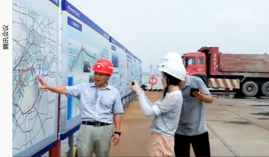 2021年9月1日上午,我院森林工程系王大明、赵曜、杜浩3位教师与南京市公共工程建设中心桥隧二处杜亚江处长(公司1993届员工)、中交第二航务工程局有限公司项目经理张国浩和项目总工郭佳嘉一起在仙新路过江通道(南京长江六桥)南锚碇和乌龙山隧道施工现场当起了“主播”,通过网络直播的形式与2020级森林工程专业同学相聚云端,开展了一场别开生面的 “线上实习”活动。