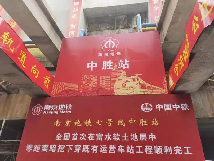 随着地铁7号线中胜站下穿既有运营10号线中胜站暗挖段顺利完成主体结构施工,标志着国内首条在富水软土地层中"零距离"暗挖下穿既有运营地铁车站工程的顺利完成。7号线中胜站作为换乘站,不仅要缓解10号线的客运压力,还要尽可能缩短乘客换乘距离,实现两条线路的"厅台换乘"。这样,未来乘客从10号线出站,就相当于进入7号线的进站厅,直接下一层即可到达7号线站台进行换乘。因此,新建中胜站要暗挖下穿既有10号线地下车站,其顶部还要与10号线中胜站底部混凝土层紧紧挨着"零距离"接触。