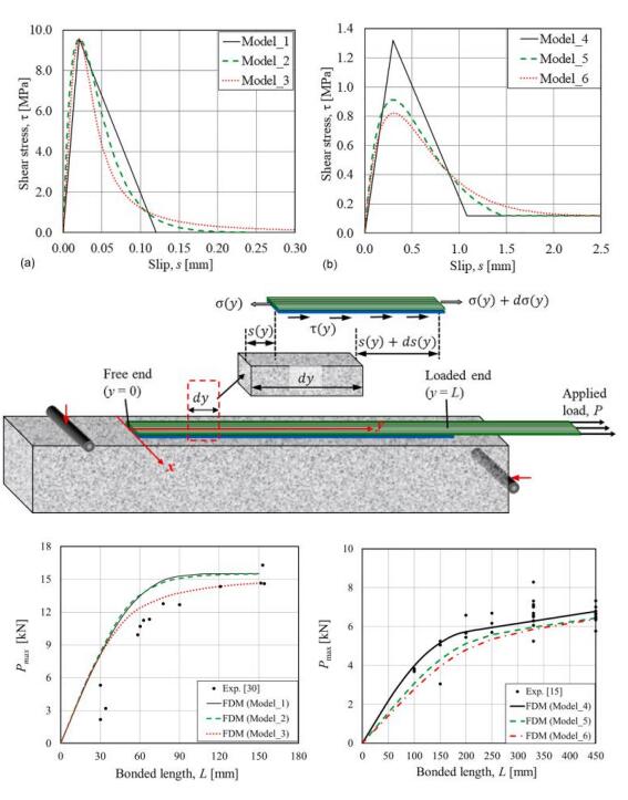 随着基础设施服役年限增加,世界范围内数量众多的混凝土桥梁出现各种病害引起的性能退化,亟需耐久可靠的材料进行修复。纤维增强聚合物基和水泥基复合材料(FRP和FRCM)具有高强、轻质、耐久的优点,已在混凝土桥梁修复中得到大量应用。然而,FRP/FRCM-混凝土界面脱粘始终是制约修复结构承载力的关键问题。针对该问题,论文提出一种通用、快速的有限差分法来揭示FRP/FRCM-混凝土界面脱粘全过程。该研究基于有限差分法,把粘结-滑移控制方程离散为非线性方程组,利用弧长法克服了粘结-滑移问题常出现的回弹(Snap-back)现象带来的收敛问题和平衡路径缺失问题。该研究自编有限差分法程序,分析了6种粘结-滑移本构模型对应的剪切试验的力学响应,和文献中的试验结果吻合较好。