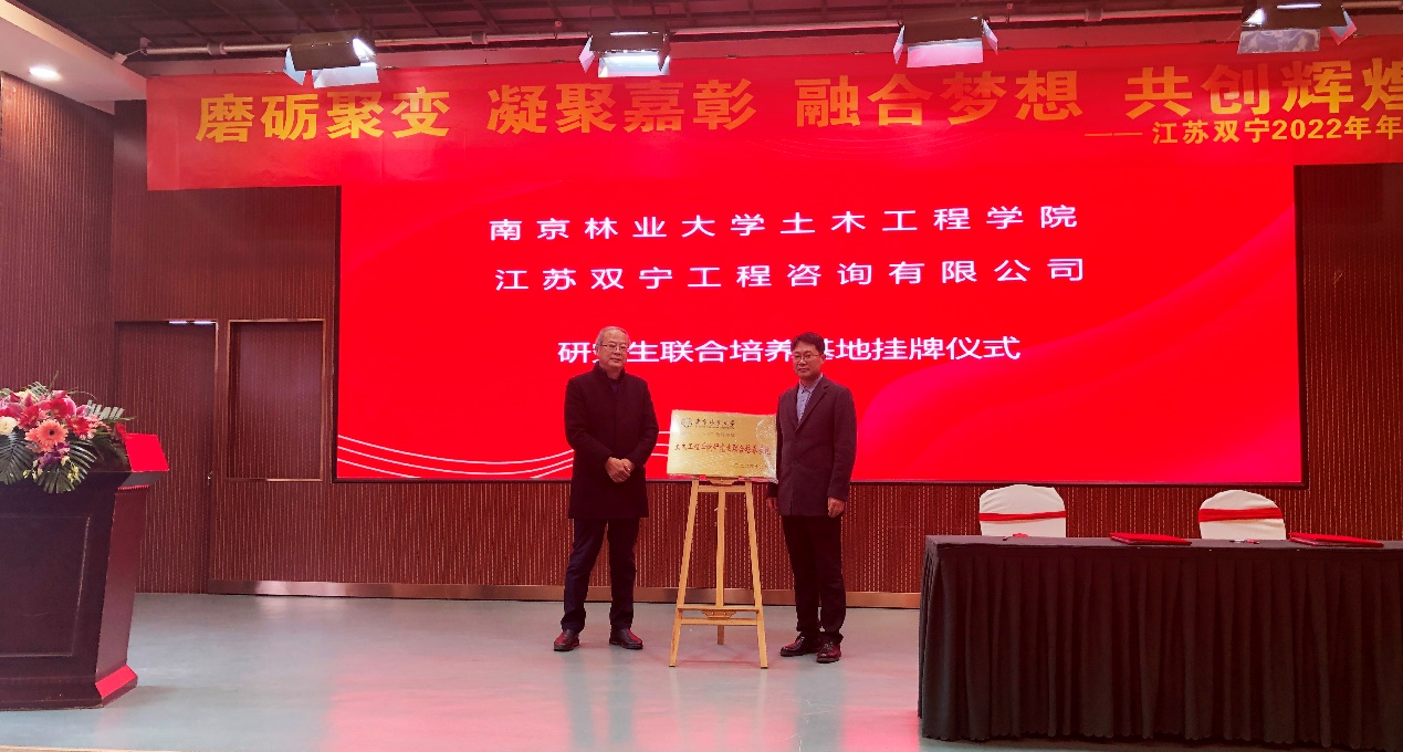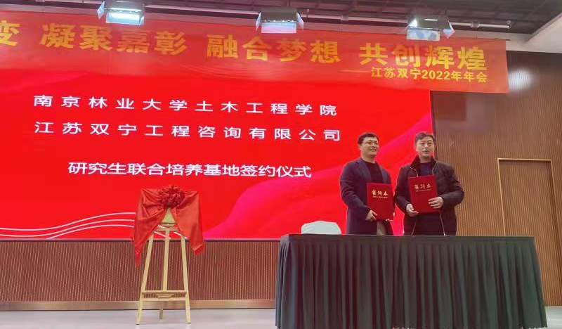 2022年1月9日下午,公司纪委副书记、监察处处长李国芬教授、公司经理魏洋、李海涛副经理、黄凯健教授、姜元中和董峰辉老师等一行来到江苏双宁工程咨询有限公司举行研究生联合培养基地签约揭牌仪式,江苏双宁工程咨询有限公司负责人周铁军董事长及公司各部门相关负责人出席了研究生联合培养基地签约揭牌仪式和校企合作交流座谈会。