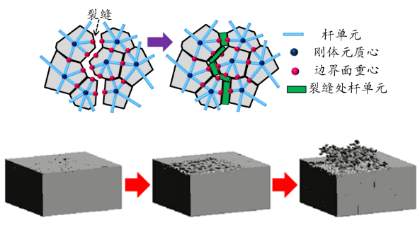 论文针对火灾高温下混凝土处于热传导-蒸汽压耦合作用受力特点,以与物质移动理论相结合的非线性分析方法为研究平台,借鉴既有的基于物质移动理论的杆单元网络模型,研究考虑热传导-蒸汽压耦合作用的混凝土高温破坏行为解析方法。该解析方法采用刚体单元对混凝土连续体进行离散化处理,采用三维杆单元网络表征混凝土内部热传导与开裂前后蒸汽压不同移动规律。所采用的解析方法可以准确反映火灾高温下混凝土开裂直至爆裂的真实破坏形态,为混凝土高温破坏行为研究提供了可行方法。