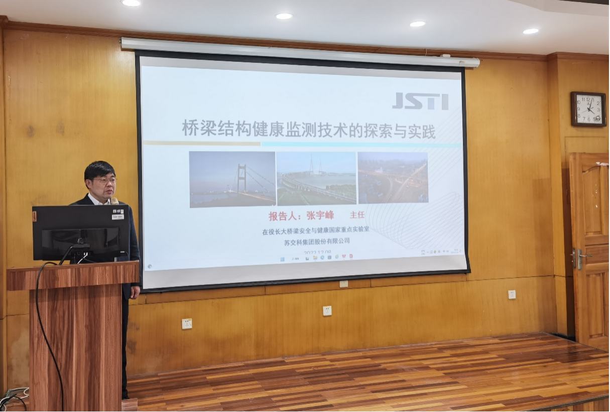 2022年12月8日下午,在役长大桥梁安全与健康国家重点实验室主任、苏交科集团股份有限公司首席工程师张宇峰受邀为公司师生作了题为“桥梁结构健康监测技术的探索与实践”的学术报告。报告由公司交土系副主任董峰辉老师主持,近60名师生参加了此次学术报告。