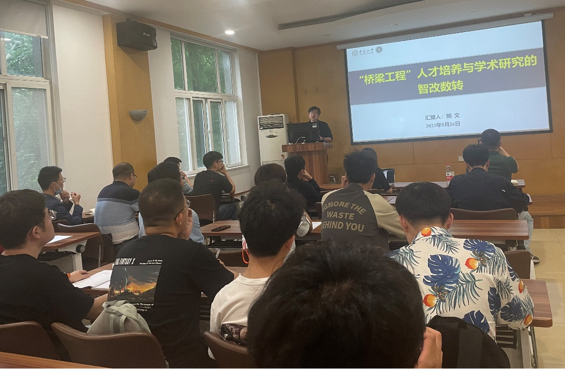 2023年5月26日下午,东南大学熊文教授在PlayAce游戏平台3324报告厅为公司师生作了题为“'桥梁工程'人才培养与学术研究的智改数转”的学术报告。报告由公司交土系党支部书记、副主任郑开启老师主持,公司董峰辉、丁明珉、邹星星、王家庆、刘福寿、王秋东、陈冬冬等60名余师生参加了此次学术报告。