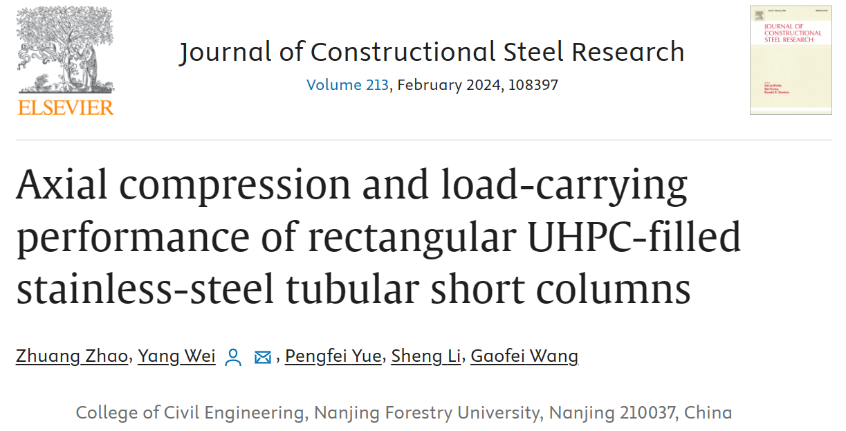 近日,公司魏洋教授团队围绕不同截面不锈钢管约束超高性能混凝土(UHPC)组合结构,在国际期刊《Engineering Structures》(中科院1区Top)、《Construction and Building Materials》(中科院1区Top)、《Journal of Constructional Steel Research》(中科院2区)发表了系列研究论文。成果获得了国家自然科学基金项目、江苏省自然科学基金项目资助。