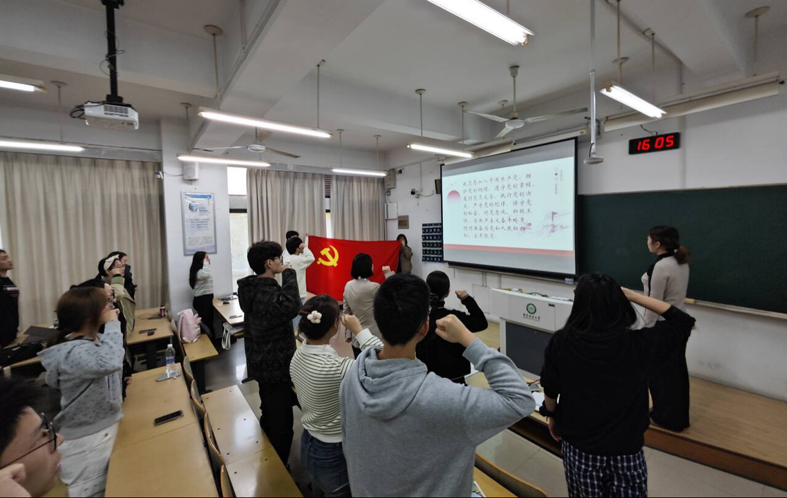 本次典礼在激情高昂的国歌中拉开序幕。徐瑶同学带领大家重温入党誓词,大家在党旗下庄严宣誓。