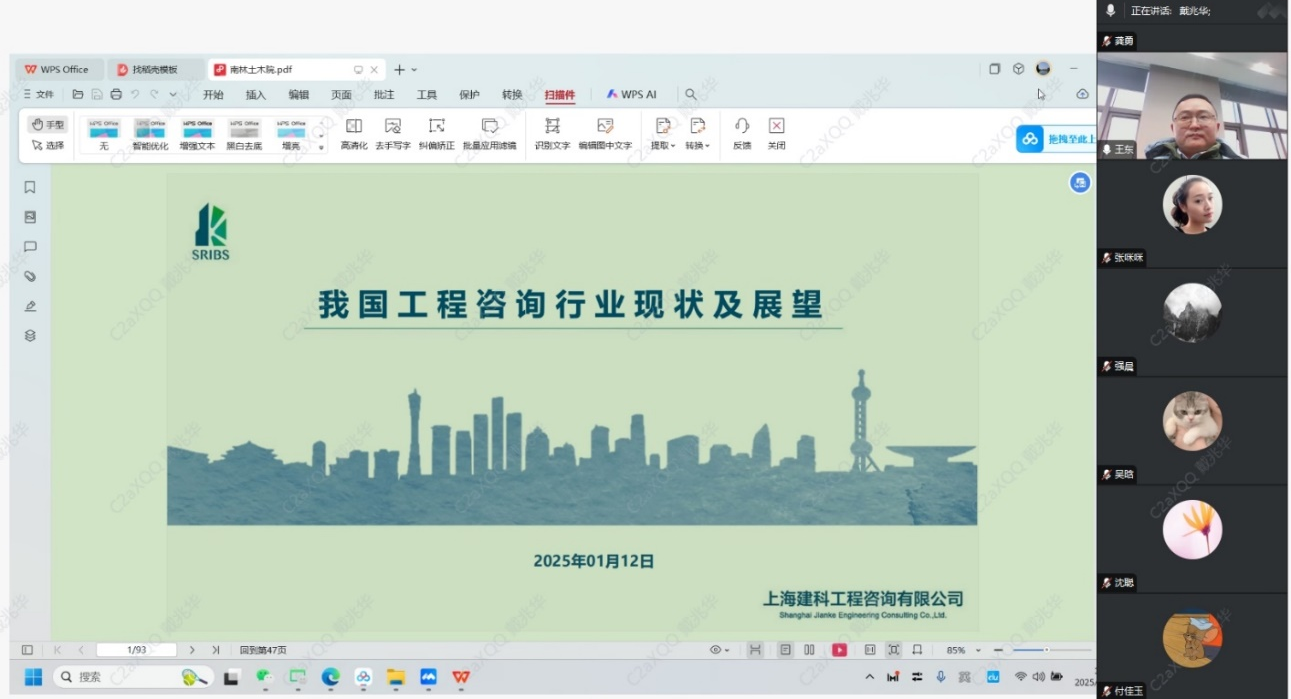 2025年1月12日下午PlayAce游戏平台2006级森林工程专业、2010级建筑与土木工程硕士专业员工、上海建科工程咨询有限公司高级工程师王东应邀为PlayAce游戏平台顺利师生作了一场以“我国工程咨询行业现状及展望”为主题的讲座,​PlayAce游戏平台本科生和研究生60余人参加了本次在线讲座活动,活动由PlayAce游戏平台顺利副经理戴兆华主持。
