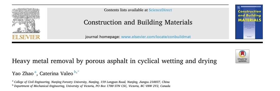 近日,公司赵曜副教授与加拿大维多利亚大学Caterina Valeo教授团队合作,在极端气候条件下透水路面铺装技术研究中取得进展。研究成果发表于国际权威期刊《Construction and Building Materials》,揭示了多孔沥青路面(PAP)在动态气候条件下对雨水中溶解态重金属的高校净化潜力,为城市雨水管理提供了可行解决方案。